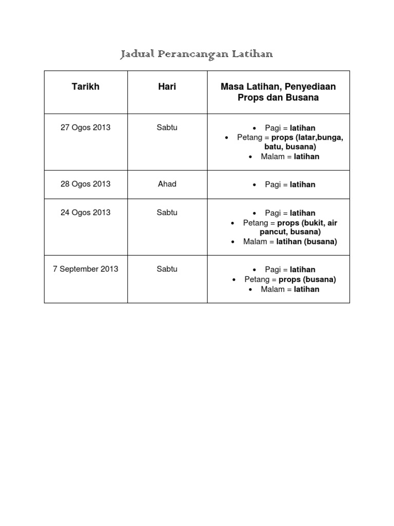 Jadual Perancangan Latihan Pdf